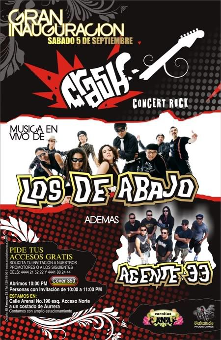 Señores, el día de hoy a las 10 de la noche se inaugura el nuevo Antro Rock Crash, anteriormente llamado acceso cero sin ninguna clase de fama, XD, aquí el poster.